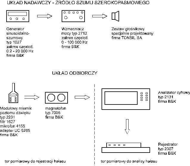 Pomiary powyższych parametrów akustycznych wykonano w 125 równomiernie rozłożonych punktach pomiarowych (w prostokątnej siatce punktów), w pomieszczeniu laboratoryjnym oraz w kabinie badawczej. Podczas badań używano zestawu pomiarowego przedstawionego na rys.Z.4. Wyniki pomiarów przedstawiono w postaci graficznej na rys.Z.5.